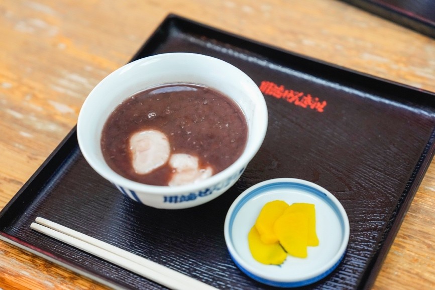 Kawabata Zenzai (red bean soup) was born in the early Taisho era in Kamikawabata, Hakata Ward, Fukuoka City. Long cherished by locals, it is affectionately known as “Japan’s sweetest zenzai.” Although it had once regrettably disappeared, the dessert was revived through efforts led by the local shopping arcades in response to residents’ heartfelt calls to “bring back that taste.” While Kawabata Shopping Arcade offers many on-the-go food options, this bowl is an absolute must-try. The shop also features displays related to the famous Hakata Gion Yamakasa Festival, making it a popular stop for visitors from outside Fukuoka City as well as from overseas.