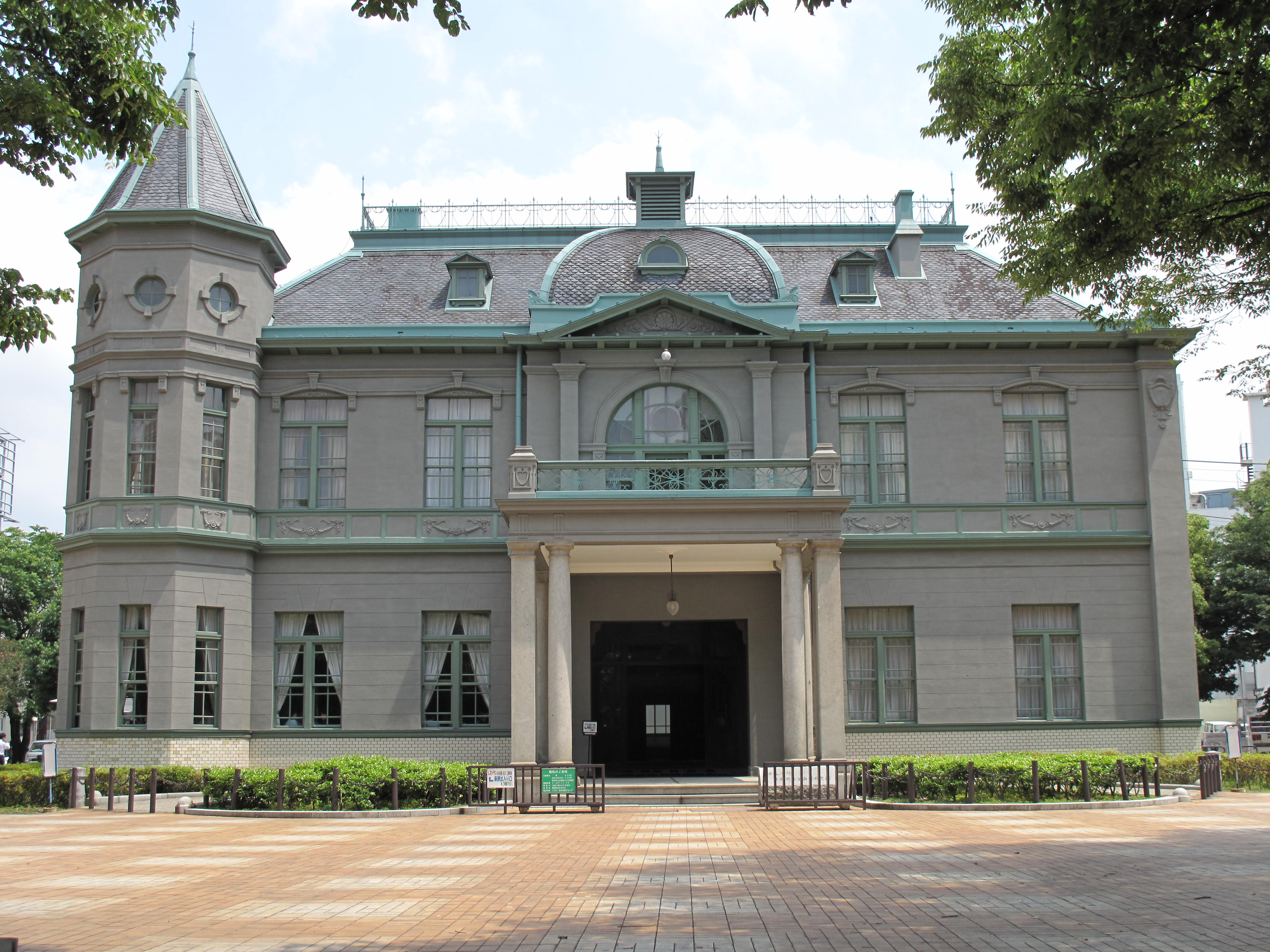 The Previous Fukuoka Prefectural Civic Hall and Honorary Guest House  Kihinkan stands nestled within the lush greenery of Tenjin Central Park. Built in 1910 as a reception facility for guests attending the 13th Kyushu and Okinawa Product Exhibition, which showcased industries from across Kyushu, it was a prestigious setting where even members of the Imperial Family of the time once stayed. The building became a symbol of Fukuoka City’s growth into a modern metropolis. Today, due to its historical and architectural value, it is designated as a National Important Cultural Property.