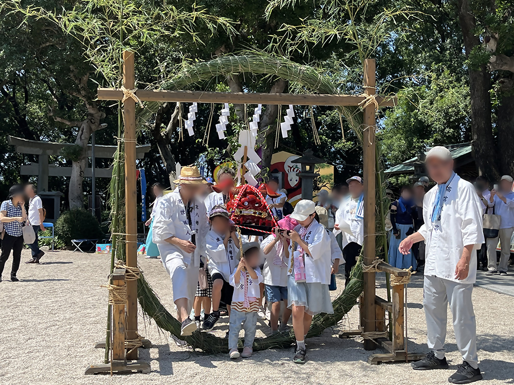 The bonds among the people with Takamiya Hachimangu Shrine at their core are still alive today. At the Takamiya Hachimangu Shrine Lion Festival (a City-Registered Intangible Folk Cultural Property) held on the last Sunday of June every year, a portable shrine bearing a lion head departs from the shrine and makes its way around homes and shops in the surrounding area. At each stop it makes, the portable shrine is raised high, and locals pass underneath it as a way of praying for sound health. The spirit of cherishing bonds in the community continues to be passed down today.