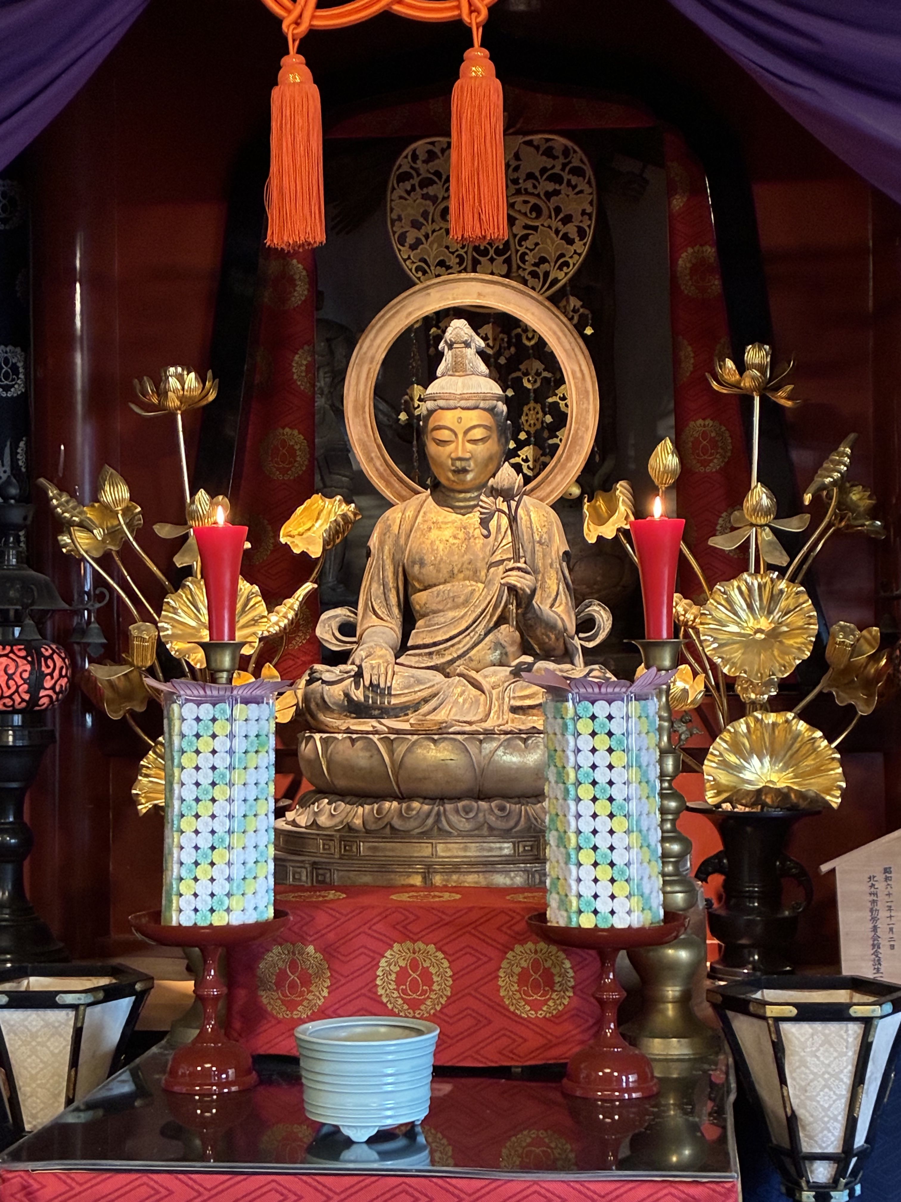 The Seated Statue of the Holy Kannon, known as the main deity enshrined in the temple, is believed to have been created in the Heian period, and has been designated a National Important Cultural Property. While it is not usually on public display, we were given this special opportunity to view it. The compassion of Kannon is clearly expressed by the statue’s gentle smile.