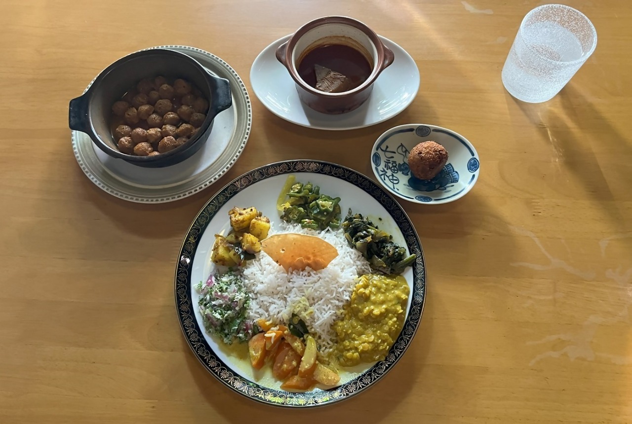 The colorful dish, which consists of curry and multiple side-dishes, is most delicious when eaten with a little bit of each of these items mixed. After a meal, Chari recommends spicy Samahan tea to warm the body. If you make an advance reservation, Chari’s Place can also prepare a vegan menu.