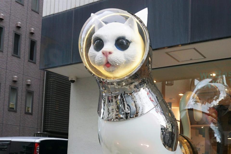 SHIP’S CAT is the ‘Guardian God of Travel’ at Community Hostel WeBase Hakata, located near Reisen Park in Kamikawabata. The motif is based on sailor cats, which travelled around the world with people during the Age of Discovery, protecting cargo, food and ships from vermin, preventing epidemics, and as a friend to heal the hearts of sailors. The helmet and metallic, robust armour are said to symbolise the courage to foresee the future of a chaotic world and to face difficulties. The artist, Kenji Yanobe, is a contemporary artist who has attracted attention for his numerous giant three-dimensional works. This work is also three metres high and its impact stops passers-by. It is both a ‘guardian god’ and a ‘beckoning cat’. Incidentally, its nickname is ‘Meowpie’.