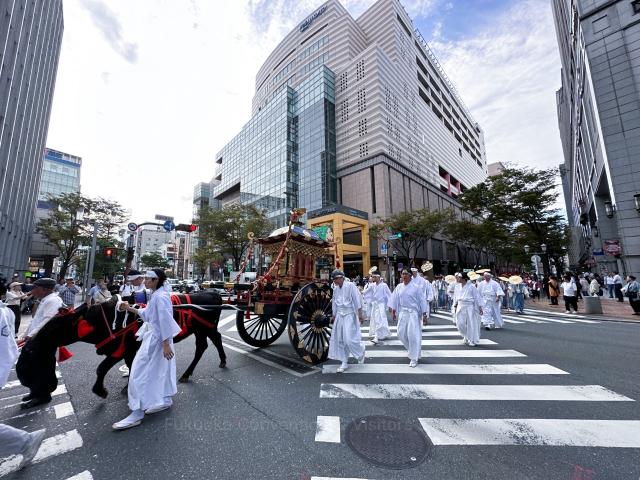 The Okunchi Parade is the highlight of the whole festival. This year, the ox-drawn shrine will depart from Kushida Shrine at 10:00, before going on a small tour of the Hakata area in its fall splendor.