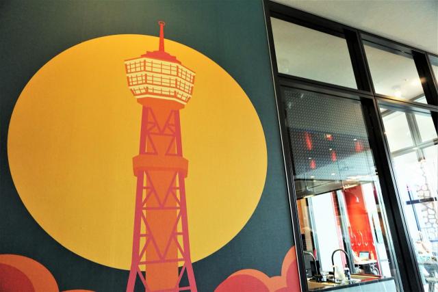 호텔 도처에 멋진 벽화가 그려되고 있습니다. 싱가포르의 아티스트들이 자신의 나라의 독특한 색깔로 포장마차와 후쿠오카 포트터워등 후쿠오카를 상징하는 것들을 그리고 있습니다. 또한 후쿠오카 거주 아티스트인 이후쿠 카즈히코씨가 그린 벽화도 있습니다. (오른쪽 화상) 여기에서는 싱가포르와 후쿠오카가의 아트 퓨전이 전개되어 있습니다.