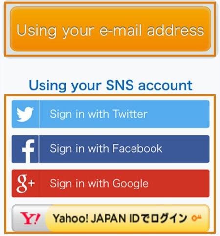 - 초기이용시에'이름・이메일주소'또는'SNS계정'을등록해야합니다.