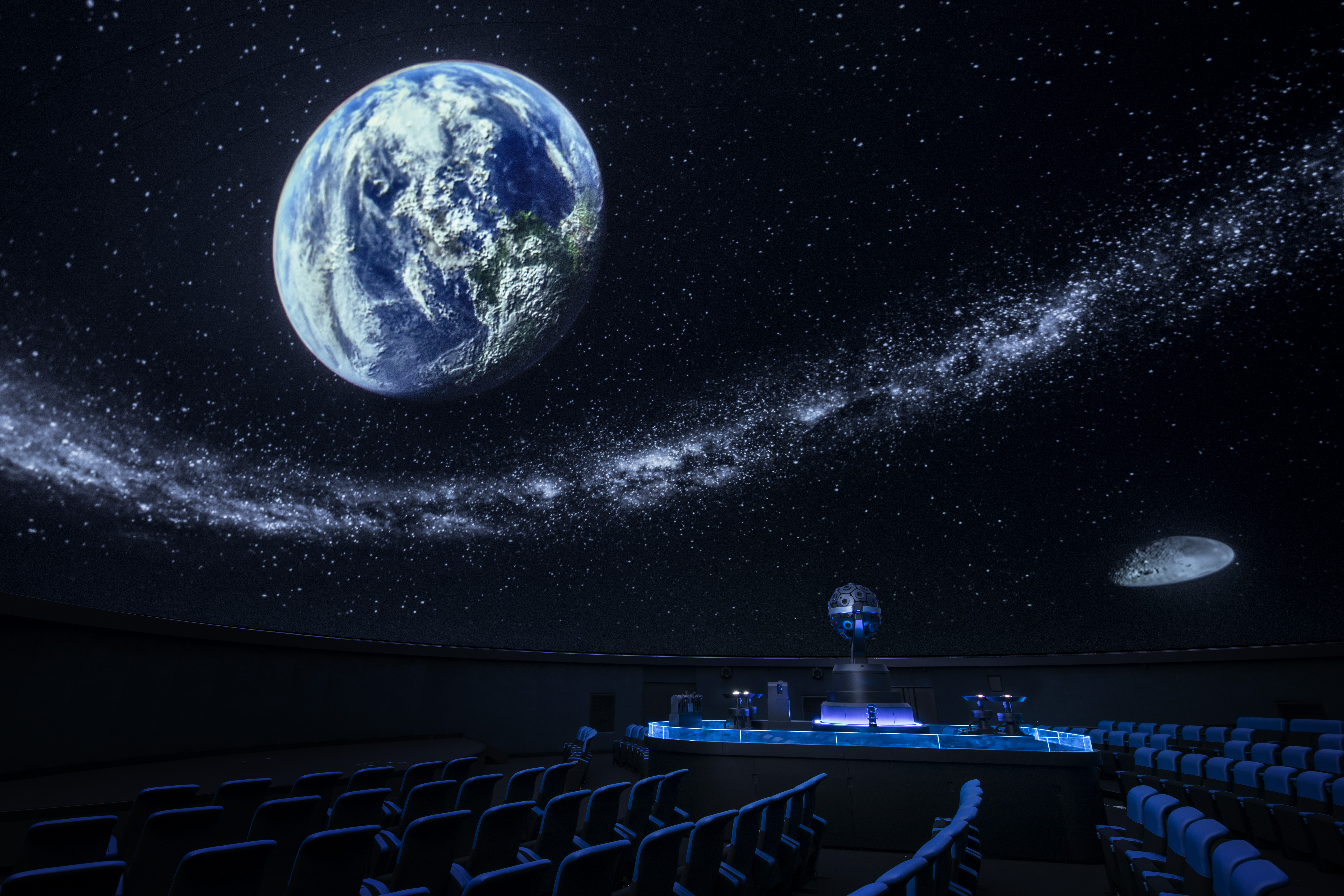 The Dome Theater Planetarium (6F), whose 25-meter diameter dome is one of the largest in Kyushu, has 220 seats arranged spaciously and its 3D digital surround system gives an extraordinary 3D appearance and realistic sensation.