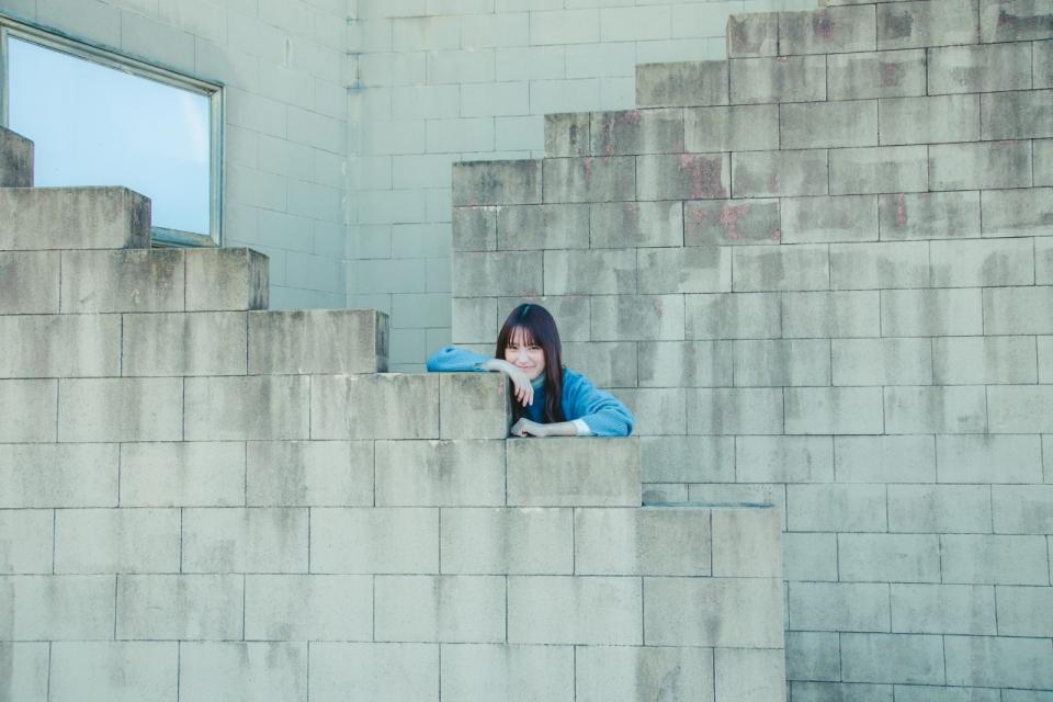 利用楼梯的高低差拍出可爱照片。 将人像拉远也能拍出可爱照片。