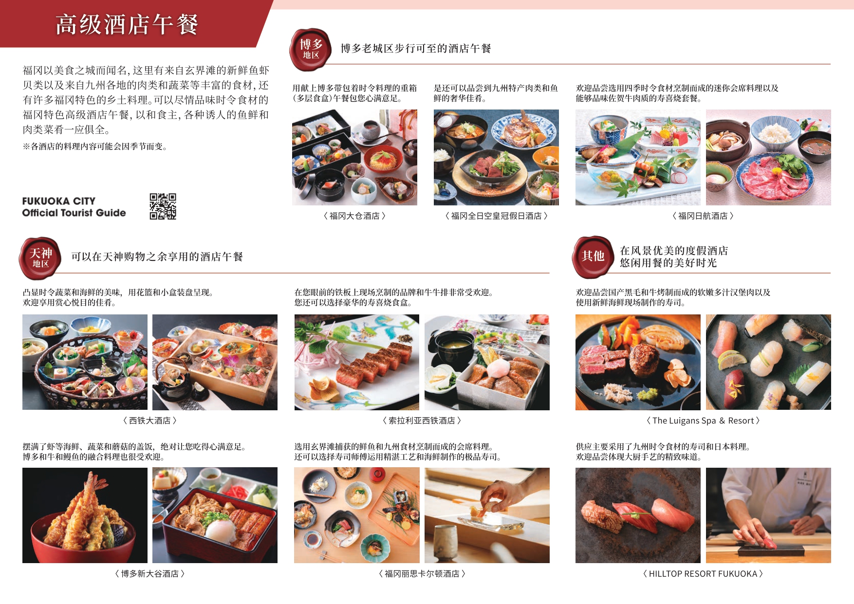 ※各饭店菜色内容可能随季节变动。
