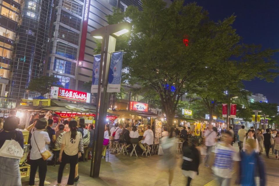太陽下山後便可以看到各式各樣的屋台出現,在各個區域點亮燈光並聚集人潮,這是福岡才有的特別光景。
