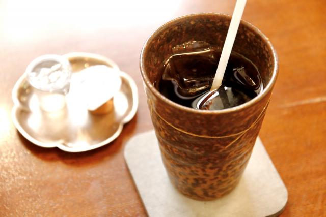 咖啡區提供講究的冷萃咖啡、八女抹茶拿鐵(800日圓)、八女茶阿芙佳朵(900日圓)等季節限定甜點。一邊欣賞盆栽度過的時光,是別處難以體驗的奢華片刻。