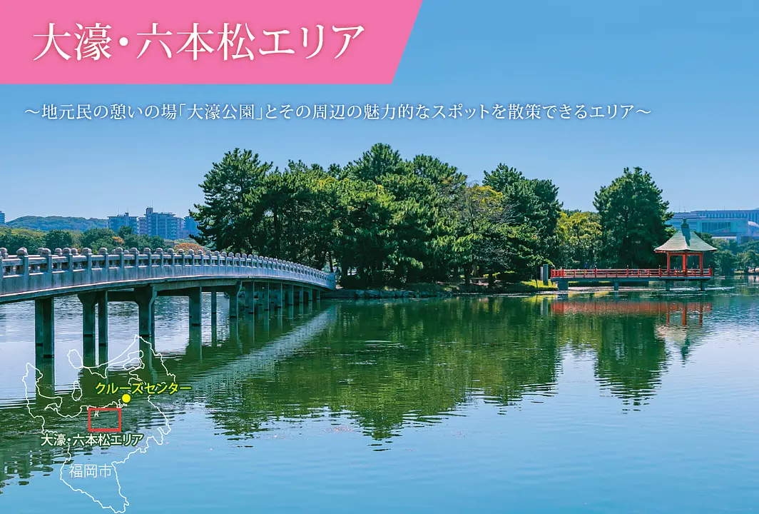 當地居民休憩勝地「大濠公園」及其周邊充滿魅力的景點,非常適合散步的區域。