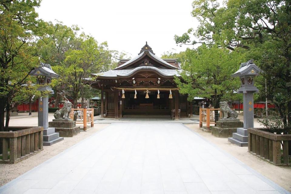 「古事記」當中有記述神功皇后生產應神天皇的內容。面對社殿(照片)右側的大樟樹樹齡已有2,000年