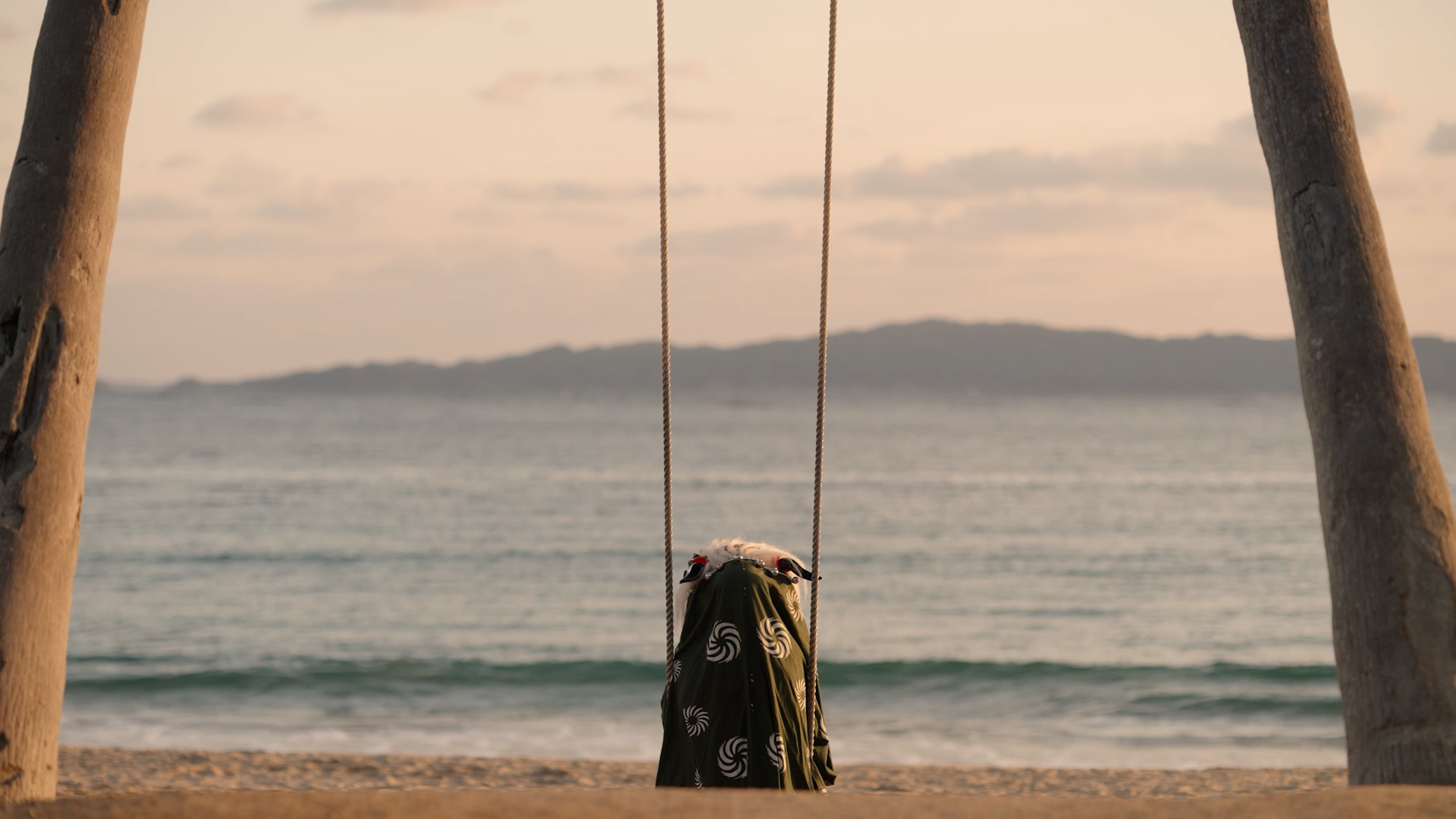 The Lion Dancer also gazes at the beautiful sunset from the sandy shore. It's a moment to give thanks to nature.