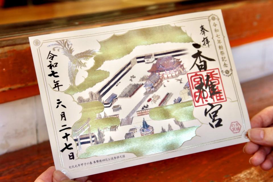 In 2025, a special seal was made to commemorate a festival held by imperial order in Kashii Shrine, held only once every 10 years. As a testament to a moment where myth and history intersect, etched into your goshuin stamp book. The touches of gold exude a sense of exclusivity (Limited until the end of December 2025).