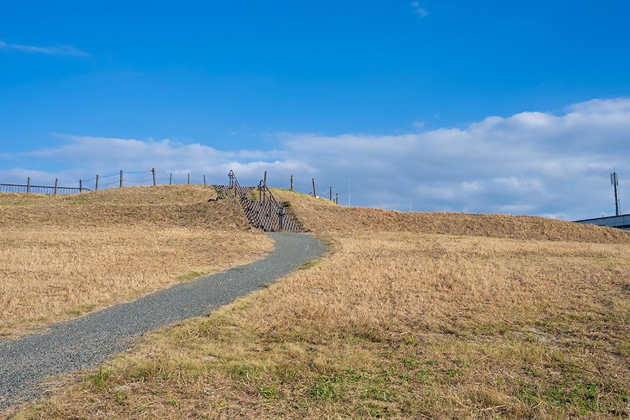 This site, located near Kyudai-Gakkentoshi Station on the JR Chikuhi Line and the Fukuoka City Seibu Regional Center (Saitopia), has been developed into a burial mound park. An earthen embankment protects the mound, and curbstones have been installed to help visitors visualize its original shape. Many first-time visitors reportedly don’t realize that it is a burial mound. The area resembles a small hill with a panoramic view of the surroundings, and informational display panels have been installed for visitors. It’s the perfect spot to stop for a refreshing break while strolling through town.