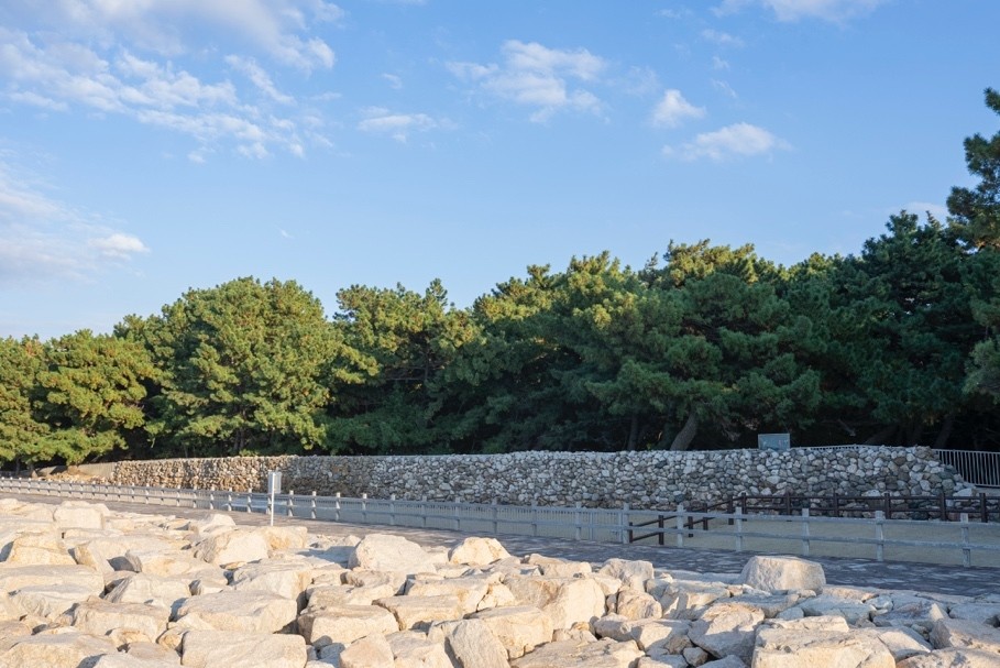 Among these, the “Genkō Bōrui (Imazu Section)” which stretches for approximately 3 kilometers along the coastal sand dunes from the foot of Mt. Koshidake in the west to the foot of Mt. Bishamonyama in the east, is the best-preserved and is a must-see spot for getting a sense of the situation at the time. It is said to have been built by gokenin warriors from Hyuga Province (present-day Miyazaki) and Osumi Province (present-day Kagoshima) who divided the construction work among themselves, and approximately 200 meters of it is currently open to the public.