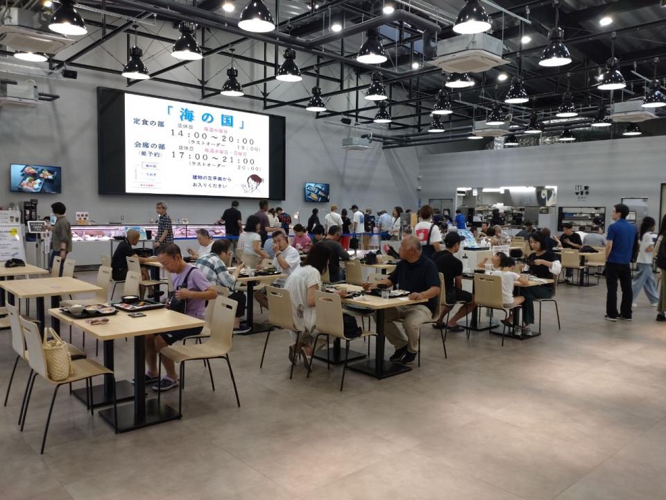 In Nagahama, visitors can experience a more rustic side of Fukuoka's fishing culture at the Uoza seafood promotion facility. In the open food hall with approximately 60 seats and the dining area called “Umi no Kuni,” you can enjoy dishes such as sashimi, grilled fish, and fried fish made with fish delivered directly from the adjacent market. The site also sells processed marine products, kitchen tools, and occasionally even offers hands-on cooking classes. Enjoy sea-breeze dining while experiencing the area’s traditional fishery lifestyle.