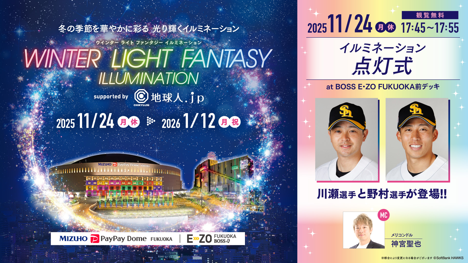 Bathed in the glow of 200,000 light bulbs, the popular winter event Winter Light Fantasy Illumination supported by Chikyujin.jp is returning. From the Mizuho PayPay Dome to the BOSS E・ZO FUKUOKA entertainment facility, the area will be immersed in a magical wintry glow.