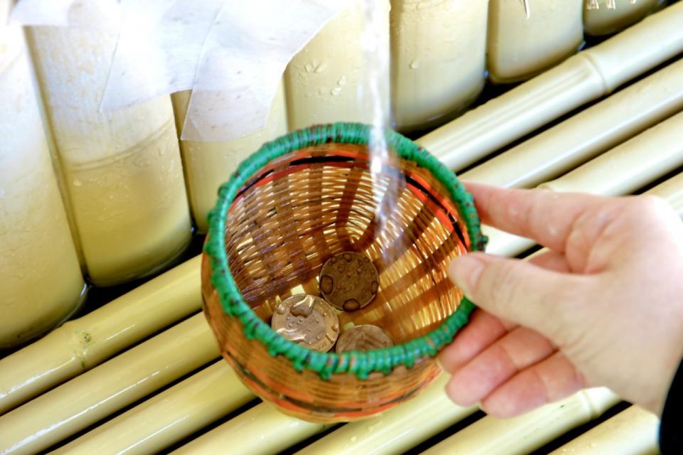 据说在社殿后方的涌泉中净化金钱,能提升财运与工作运。实际上也有许多参拜者将钱洗净后带回家。这里是能招福的能量景点。