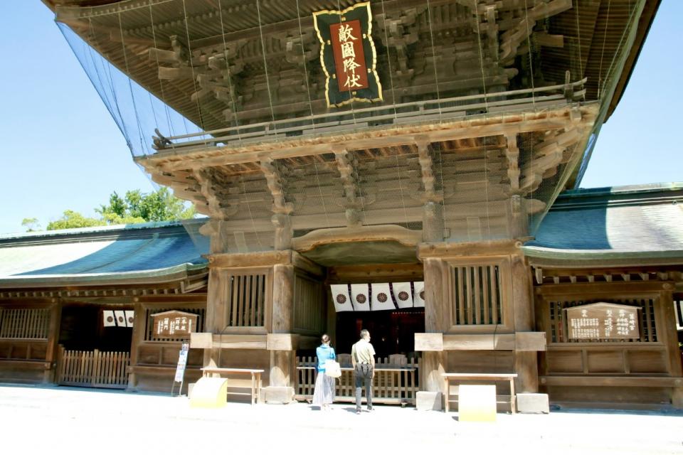 令人印象深刻写着「敌国降伏」扁额的厚重楼门。作为全国罕见的「胜运之门」而闻名,福冈软银鹰队与福冈黄蜂足球队皆前来参拜祈求必胜。门正前方就是庄严的主殿,来到这里虔诚参拜,提升胜运。