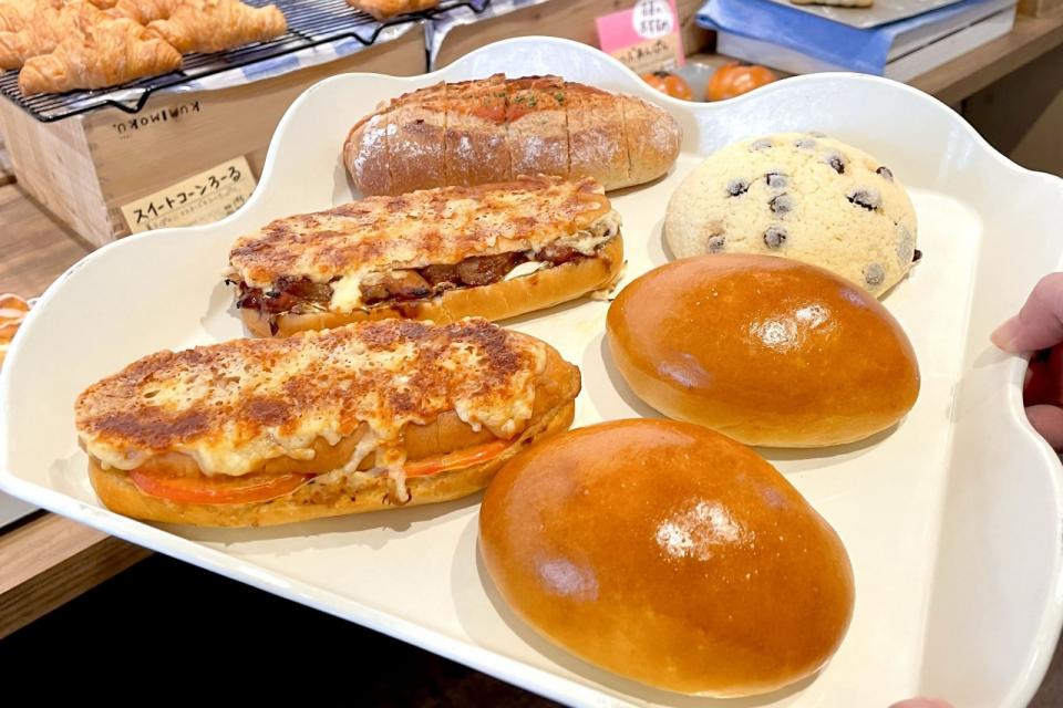 人气面包是满满手作卡士达酱的奶油面包(230日圆)。鲔鱼番茄帕尼尼(440日圆)也很推!